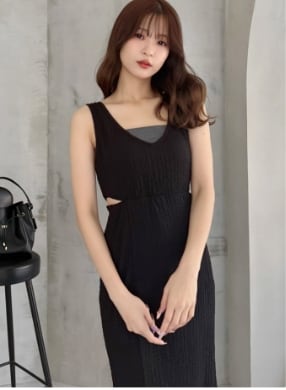 color lineupカップ付きサイドカットアウトマーメイドワンピース