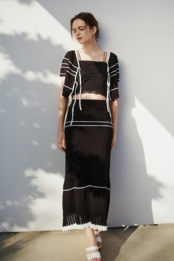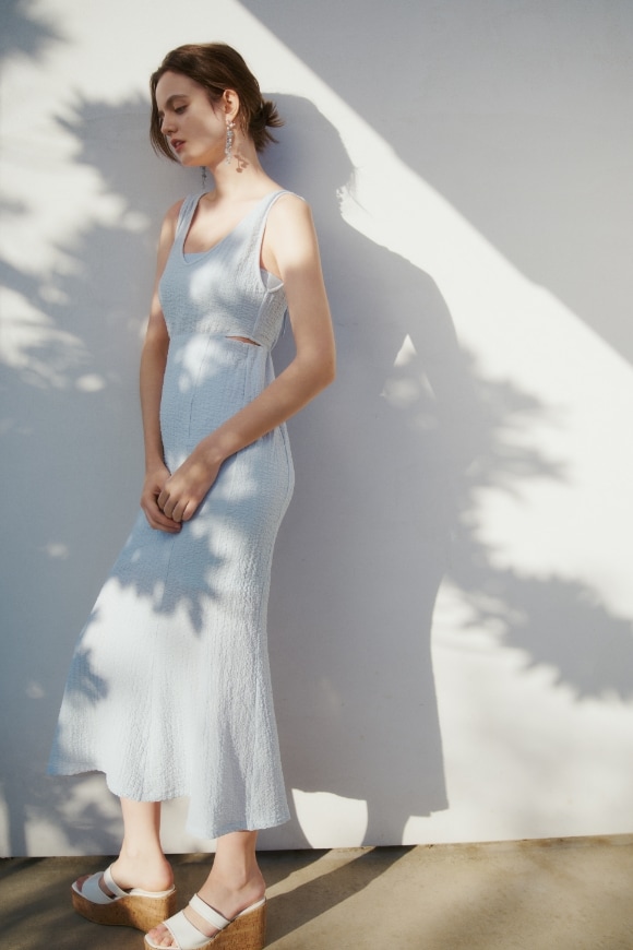 ウエストやバックのスリットでさりげなく肌見せ、