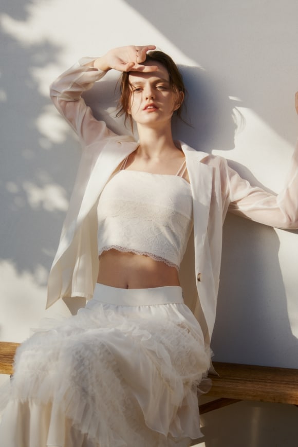 繊細なレースをあしらった