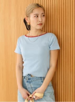 相性の良いショート丈。首元のアクセントカラーも