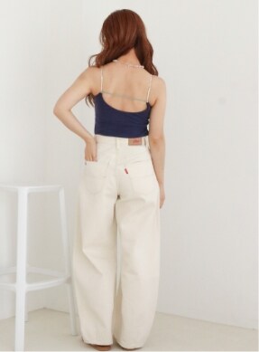 アイボリーのブラキャミで程よく肌見せし、
