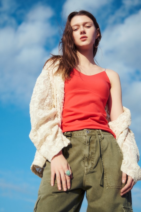 カップ付きキャミの自然にフィットするつけごこちで、